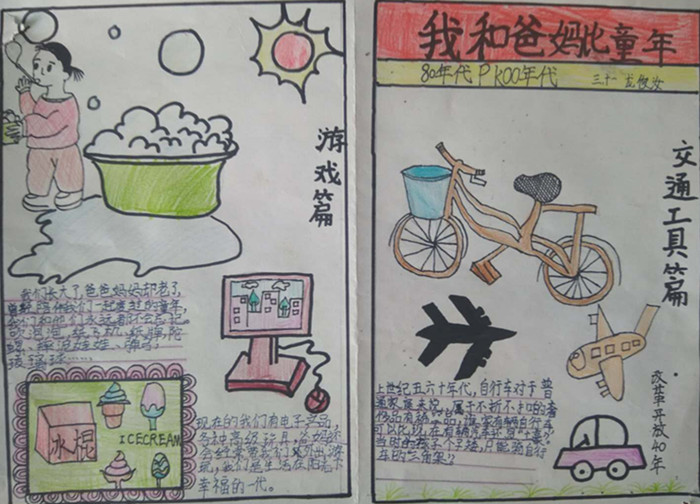 搜集爸爸妈妈和自己童年时期肖像及学习生活用品、场景等照片,了解改革开放40年来生活学习条件等方面的发展变化。